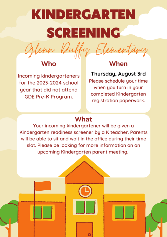 PSA to upcoming Kindergarten parents whose child did NOT attend our ABC Pre-K program here at GDE, check out the flyer below regarding 2023-2024 Kindergarten Screenings! ![]()