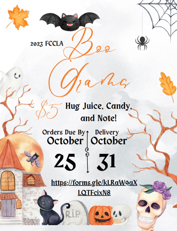 Here are the upcoming dress-up days for Homecoming week and FCCLA will be selling Boo Grams for the month of October! Click here to order Boo Grams: https://forms.gle/kLRaW9aXLQTF...