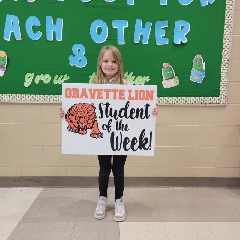 Congratulations to GUE Student of the Week! Peyton Toney is our winner. Mrs. Piatkowski said, โShe always works hard and makes great choices throughout the day!โ Keep up the awesome job, Peyton!